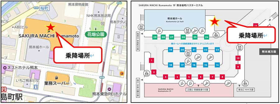 ▼熊本桜町バスターミナル 団体バスのりば(24番のりば横) 乗降場所