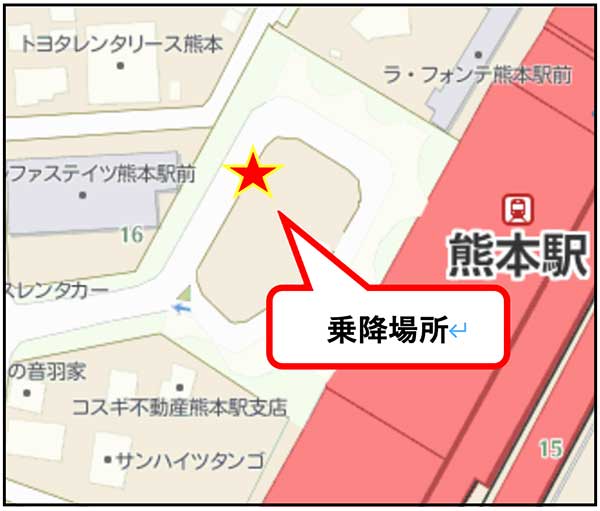 ▼JR熊本駅(西口) 団体バスのりば 乗降場所
