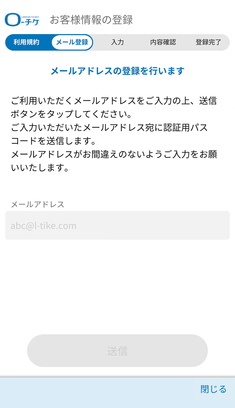 ご自身のメールアドレスを入力後、送信ボタンをタップしてください。