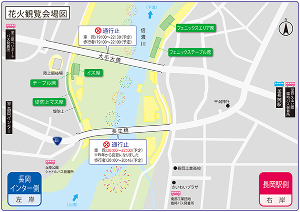 - 花火会場は全席禁煙(電子タバコも含む)です。喫煙は指定された喫煙所をご利用ください。