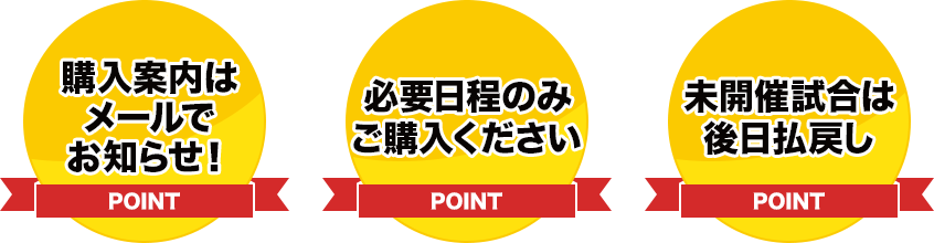 - ※4歳からチケットが必要となります。3歳までのお子様が同伴者の膝上でご観戦の場合チケットは不要ですが、座席を利用される場合はチケットが必要です。