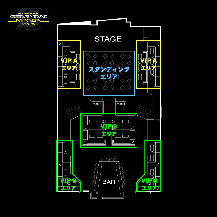 ※VIP席(ソファー席)のご利用及び、会場エントランス⇔スタンディングエリア間のご移動時以外のVIP専用スペースのご利用は不可となります。