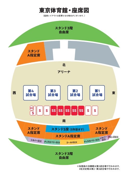 ※車いす席をご使用の方は、同伴者分を含めて「スタンドA指定席」を購入の上、大会事務局までお問い合わせください。