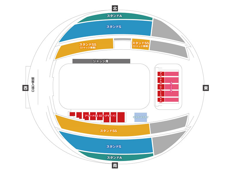 ・お席によっては、競技や演技の一部が見えにくい場合がございます。予めご了承ください。